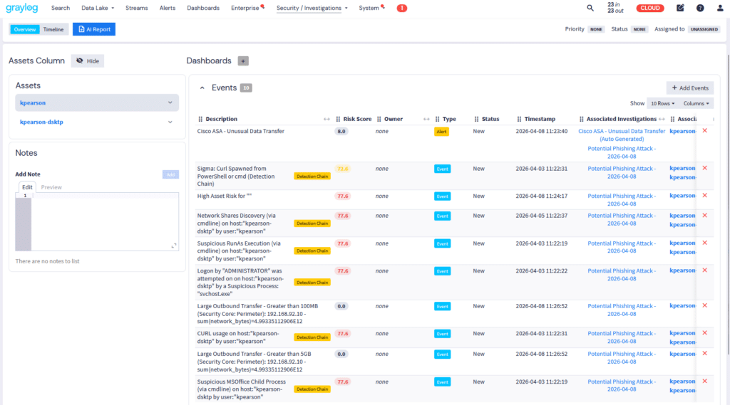 Managing investigations—searching for answers, collecting evidence, collaborating with team members, and recommending remediation—is critical for cybersecurity professionals. Graylog Investigations simplifies this process with centralized incident tracking, AI-driven analysis, and seamless collaboration.