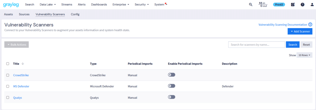Graylog’s risk management functions as a multi-layered safeguard against internal and external threats. Graylog constantly monitors for predefined or anomalous patterns, and creates alerts with risk scoring for flagging any matches for immediate attention. Users can ingest Vulnerability Scanners to find risky assets and utilize the field actions menu to drill down on the flagged data, perform inline actions, and quickly understand the scope of a threat.