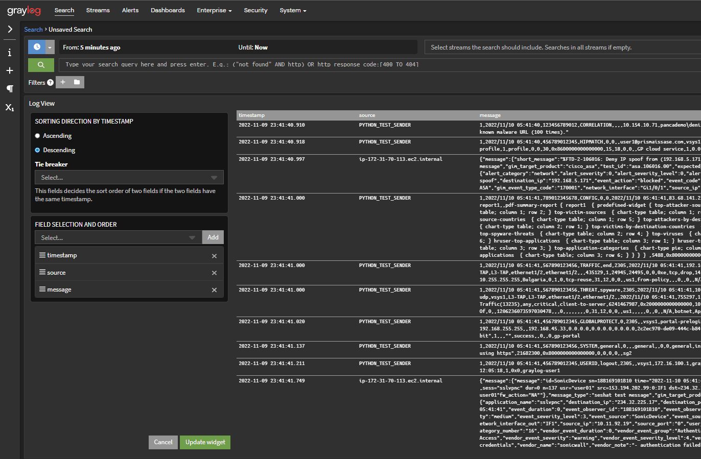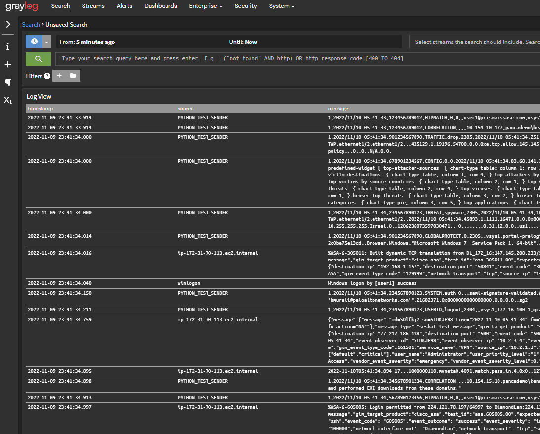 Graylog’s Log View Widget provides visualizations that make it easier for teams to find patterns and track issues by putting the message in the window to make it easier to view. When you are familiar with what log messages are present, the Log View Widget will show the complete log line in raw text allowing you to see the entire message. The Log View Widget can be configured to include the parsed lines by field for your customization needs.