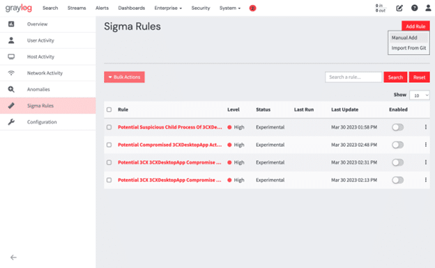 - Log into your Graylog web interface and navigate to Security > Sigma Rules