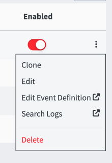 - If you want to receive a notification for that event definition, click the drop-down menu beside the enable toggle and choose “edit event definition”.