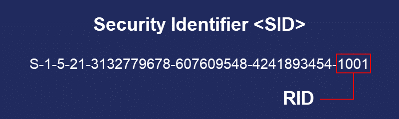 The RID, or Relative Identifier, uniquely identifies a user in Windows as part of its Security Identifier (SID). When a user logs on, the system retrieves the SID for that user from the local Security Account Manager (SAM) database and places it in the user’s access token to identify it in subsequent interactions. The local Administrator account RID is always 500, and standard user RIDs usually start at 1001.