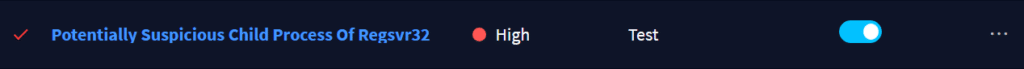 For “Potentially Suspicious Child Process of Regsvr32” you will have to add waitfor.exe to the Image list, like so.
