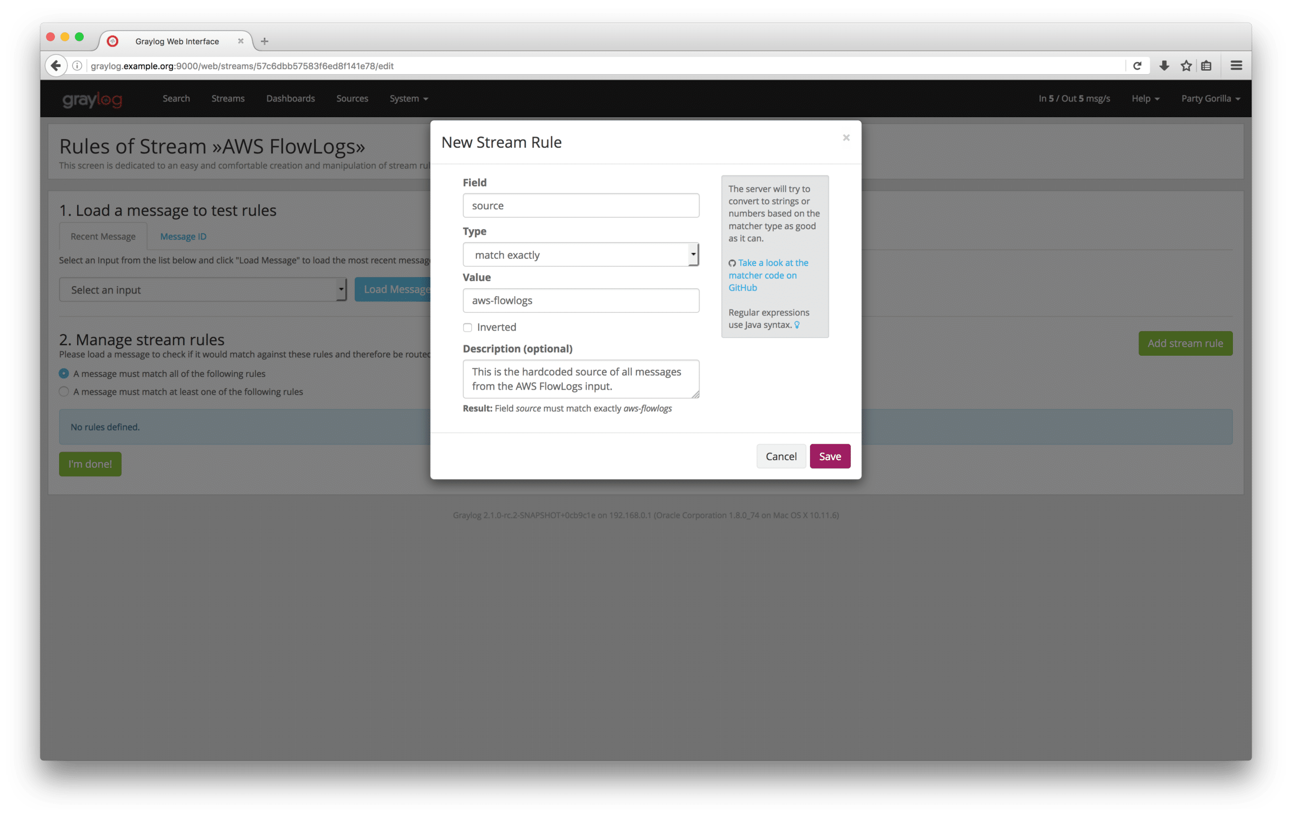 Stream rules and alert conditions can now be annotated with more information. This is extremely useful when working in a team. A team member can now look at stream rules or alert conditions and receive additional context as to why they were created or what they are intended to do.