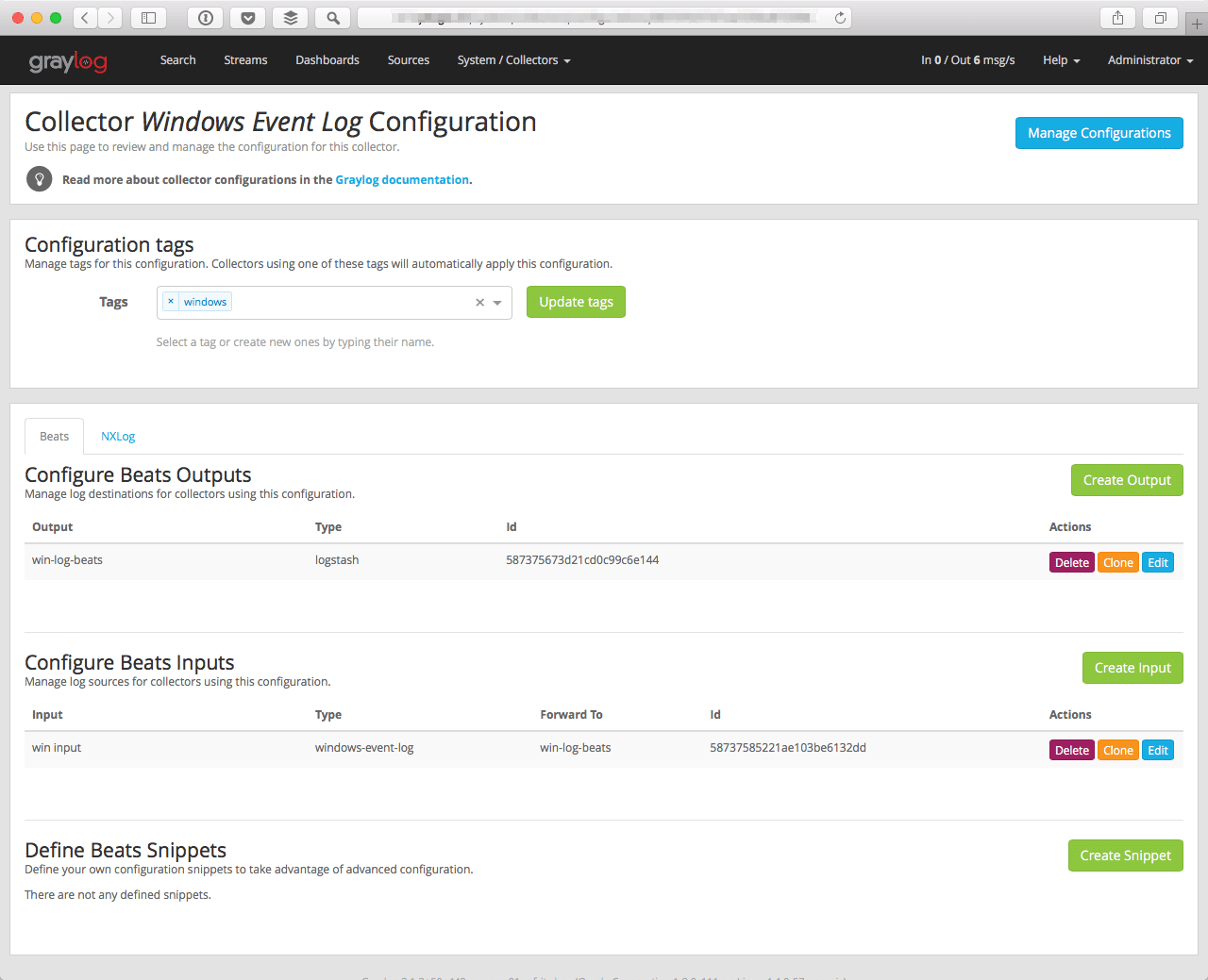 Back to the Graylog Web interface! We assume you have a beats input already running as global input on Port 5044 with no TLS.