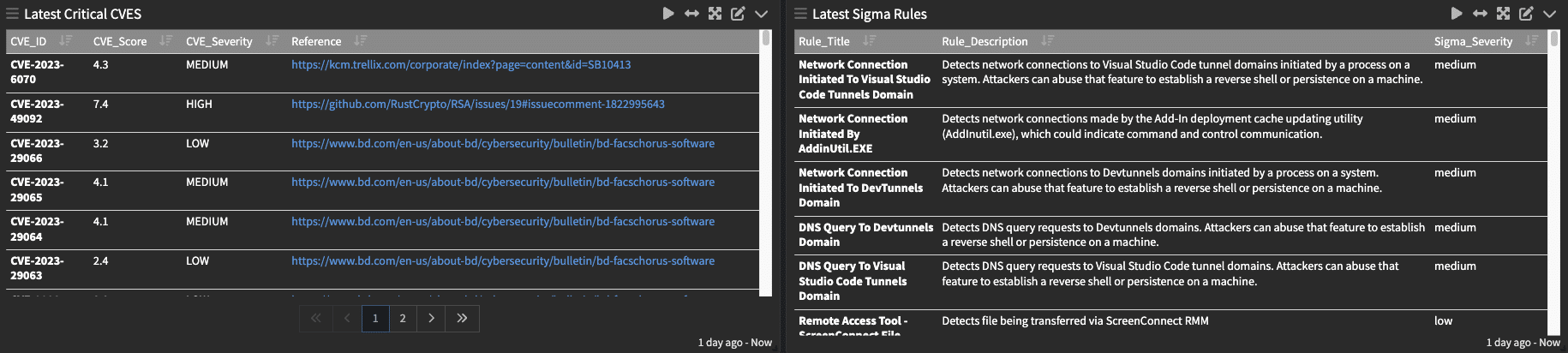 This isn’t a full solution, more like a foundation which can be built on top of over time. I have created a little Python script to scrape RSS feeds from some popular sites, grab the latest CVE information and gather information on the latest Sigma rules. This pairs quite nicely with the Graylog Sigma rule integration as if I see any I think I want to use, I can simply enable them in the Security UI.