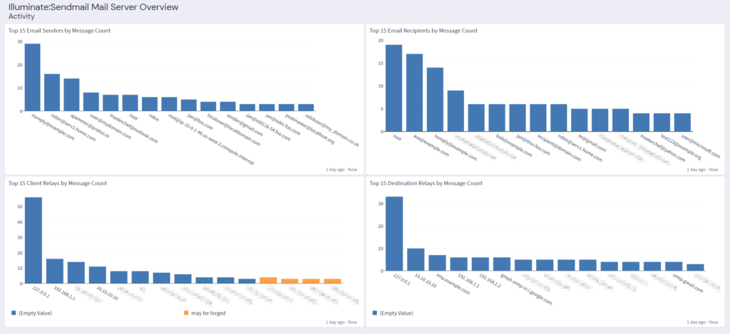 - Deepened Email Security: The Sendmail Content Pack adds a new layer of security to your email systems, giving you the insights needed to manage and protect a critical communication channel.