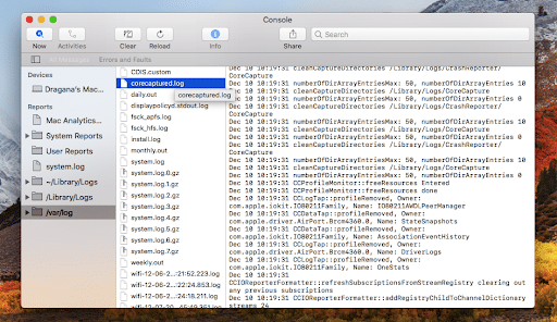 The Console app is basically the Mac version of Event Viewer for Windows, and you can access it via Finder or Spotlight search. The default screen shows console errors, but you can go through other folders for other reports. The System Reports folder contains information about all system applications, while you can find user application logs in the User Reports folder. The folder called ~Library/Logs shows the user-specific application log folder for the currently logged-in user, and you can access other users’ data by logging out, signing in as another user, and reopening the Console app.
