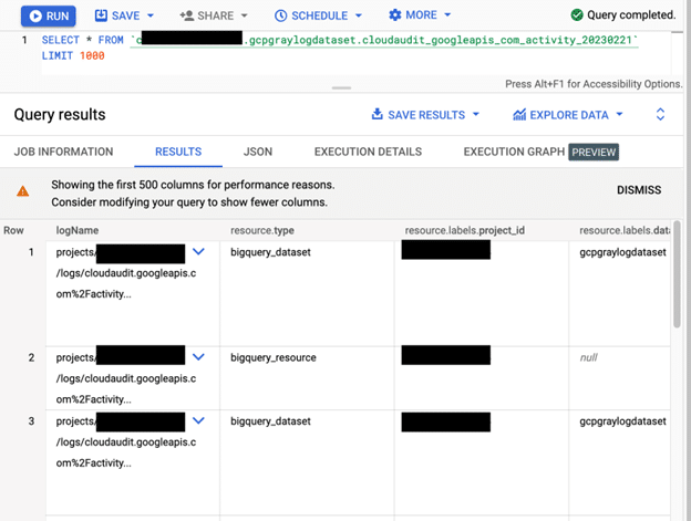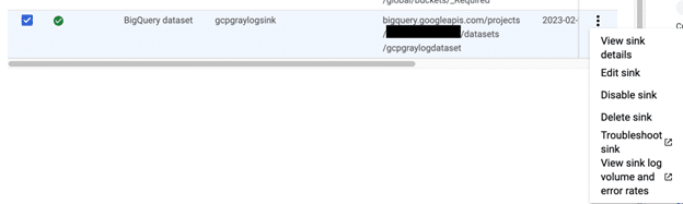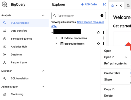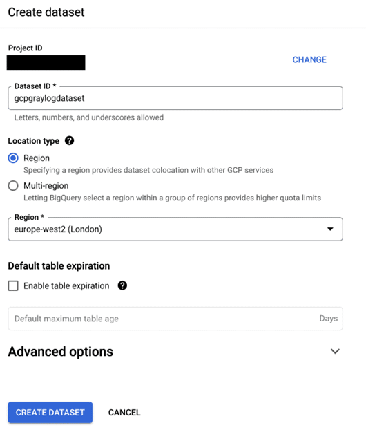 From here make sure the Dataset ID is “gcpgraylogdataset”.