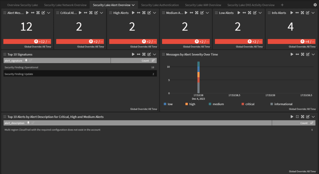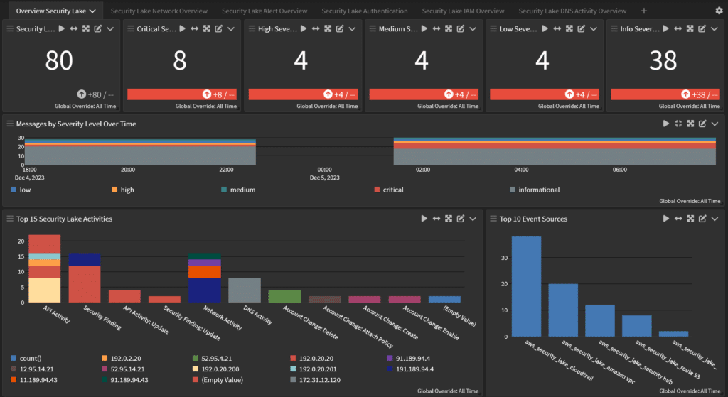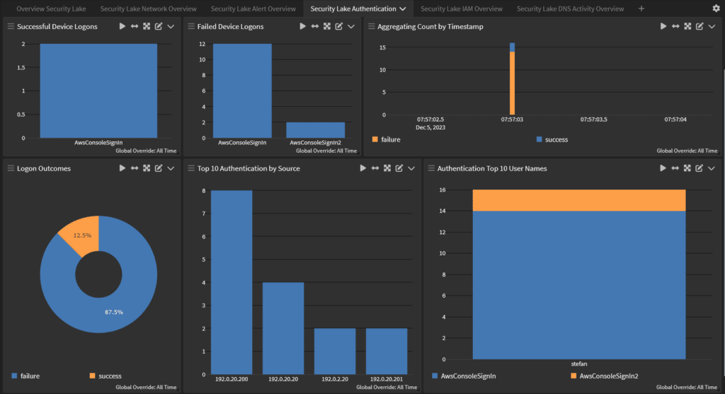 Dashboards give you a way to visualize your data so that you can make decisions faster. Since the correlation engine allows you to make sense of the aggregated data in your Security Lake, a Dashboard built on predefined searches gives you high-level insights into issues. Some questions you should ask any vendor when considering their solution include: