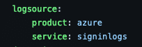 Breaking down the example detection, you can see that the logsource in this case is the Azure sign-in logs: