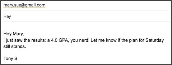 Although this email contains some information about student names and GPA, it is very hard to extract it because there is no formal structure. Imagine having to manually go through thousands of emails like these trying to extract valuable information – this is why it is important to structure data in order to work with it.