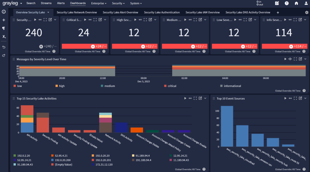 Graylog Illuminate provides pre-built content designed with common cybersecurity and log management questions in mind to give you the fast start you need for success. Available with Graylog Enterprise and Graylog Security, our pre-built content better equips you to monitor and manage challenges that can range from unlocking passwords to hunting for that bad actor that breached your network.