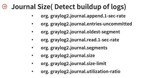 The last thing you want to monitor is the journal size. In Graylog we have a journal (default size is 5 gigabytes) where all incoming logs are spooled and then written to disk. Graylog uses this journal to parse, process, and store all messages.