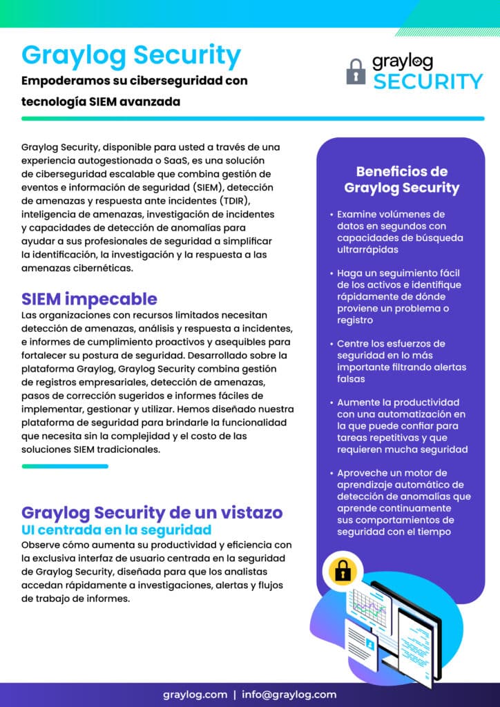 Graylog Security, disponible para usted a través de una experiencia autogestionada o SaaS, es una solución de ciberseguridad escalable que combina gestión de eventos e información de seguridad (SIEM), detección de amenazas y respuesta ante incidentes (TDIR), inteligencia de amenazas, investigación de incidentes y capacidades de detección de anomalías para ayudar a sus profesionales de seguridad a simplificar la identificación, la investigación y la respuesta a las amenazas cibernéticas.
