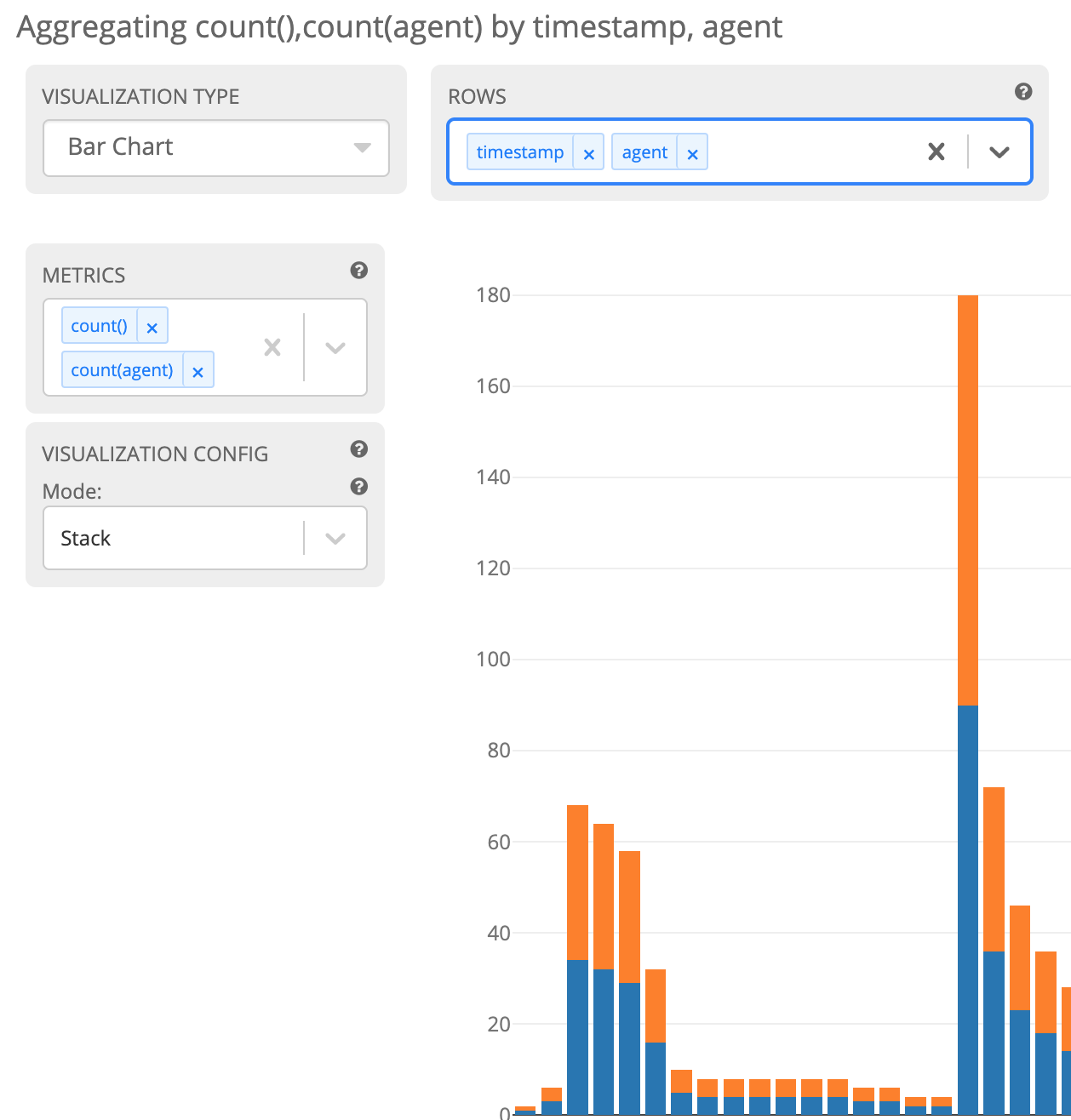 Inside the Aggregation window, you can now have a “percentile()” metric function for calculating the top percentile of your logs. Also, we have added the option for Bar Charts to have the data stacked.