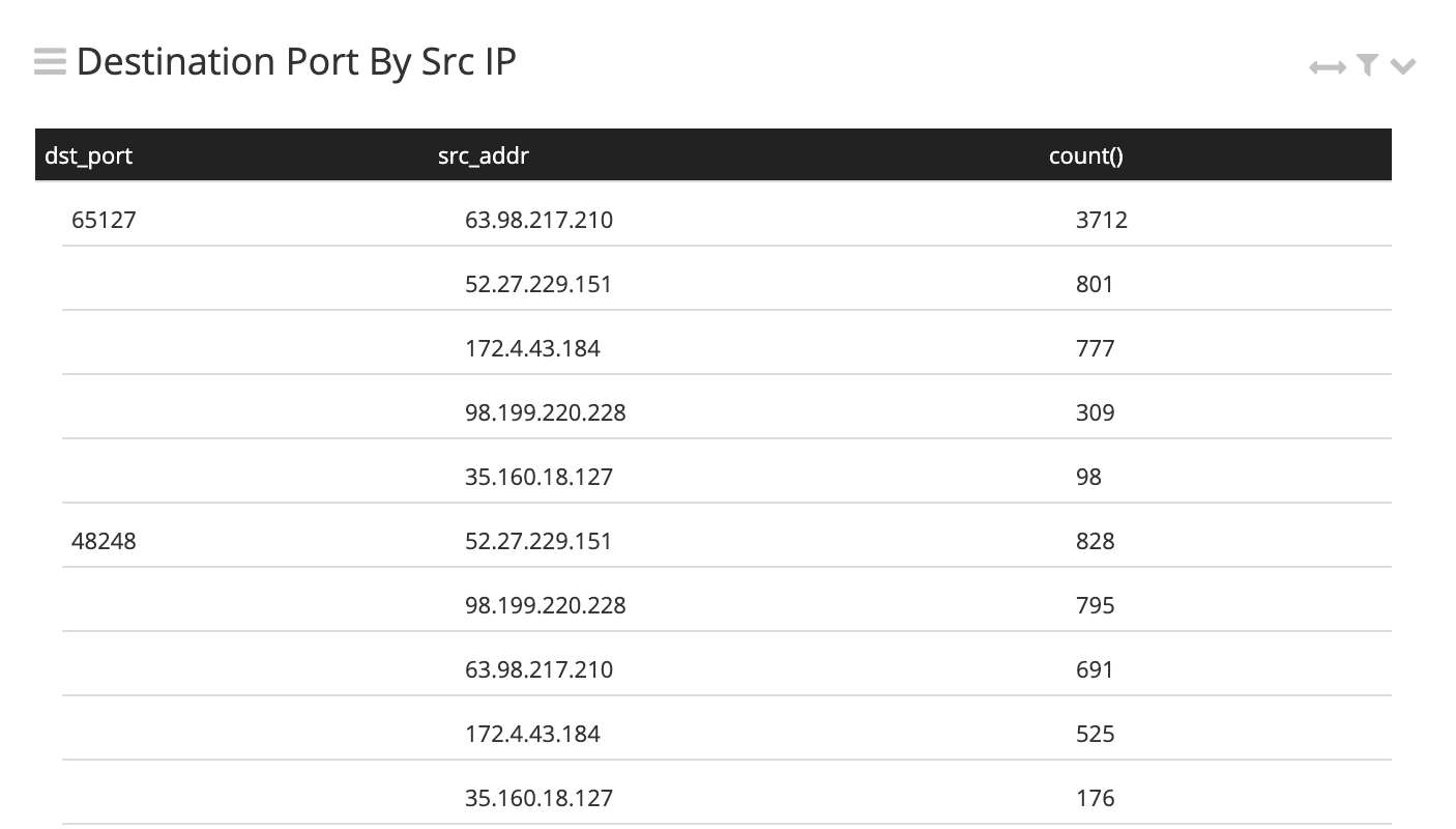 Starting off, we have introduced multi-point aggregation on data. Allowing grouping of the charts on multiple fields, refining the data set. An example would be searching on destination ports, summing total number of attempts into an aggregation chart. Now the source or destination IP address can be a second data point, breaking down all port 80 attempts by host.
