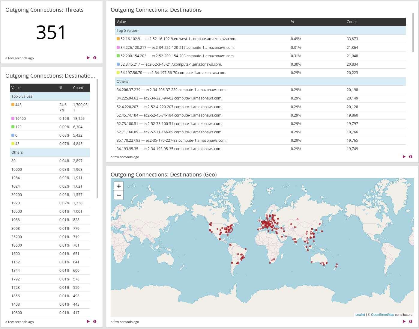 As cloud logs are ingested, additional meta-data can be added to enhance the logs in real-time. Taking network traffic logs of outside connections into the cloud environment and performing Threat Intelligence and Geo-Location lookups on each IP can quickly show any attacker or connection happening.